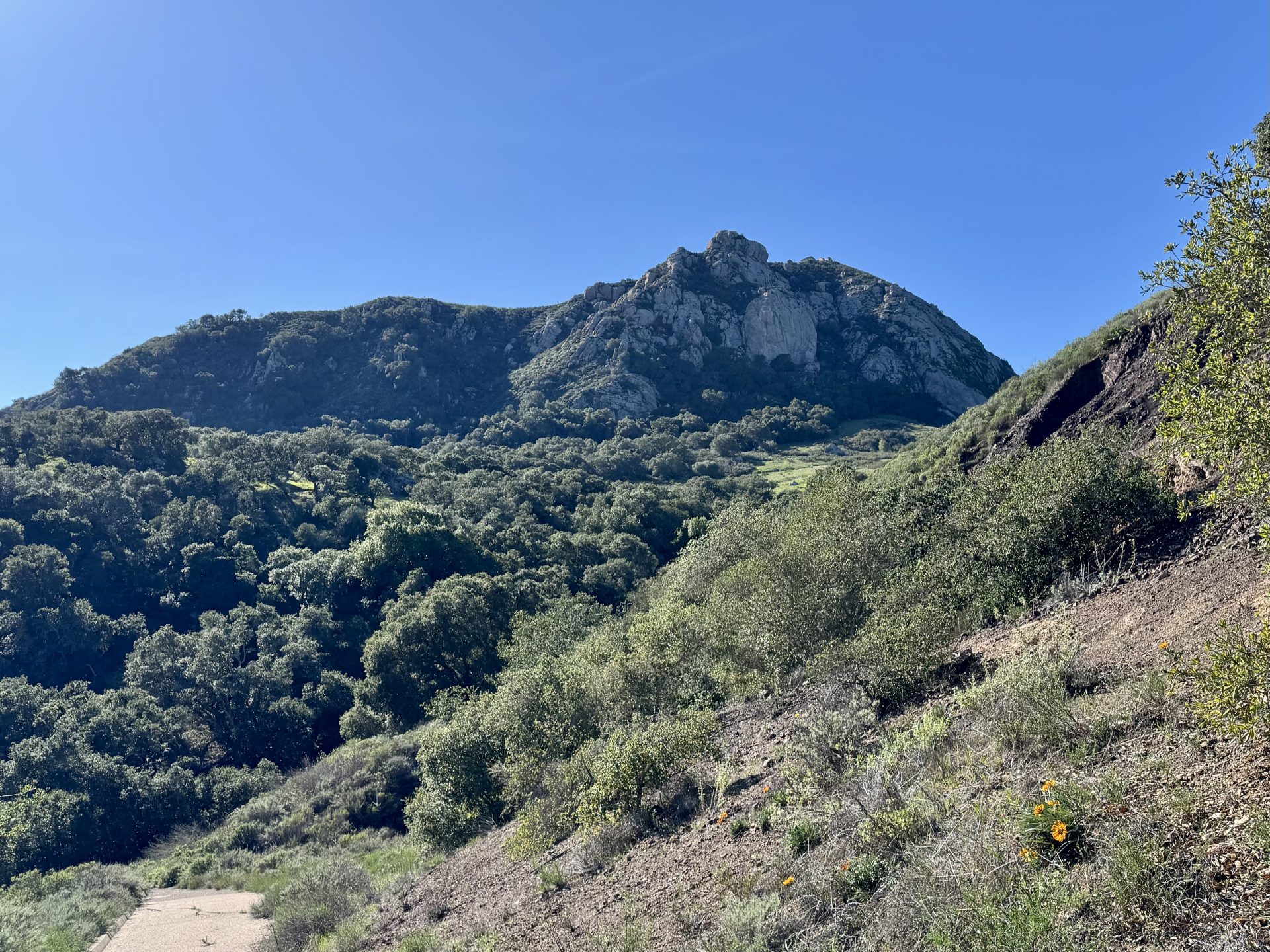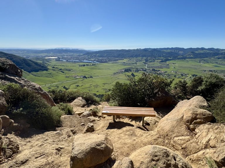 After a long drive, I was rewarded with beautiful weather and a fun short hike up to Bishop Peak. This peak is in a local neighborhood near Cal Poly, a local said it is popular with the collage students. The trail up was nicely graded, there were some rocky areas with a few big step ups towards the end. The trail ends at a couple of benches, you can scramble to the peak. Be cautious as there is a memorial sign there for someone who fell. I did the Felsman Loop Trail on the way down to add some variety.