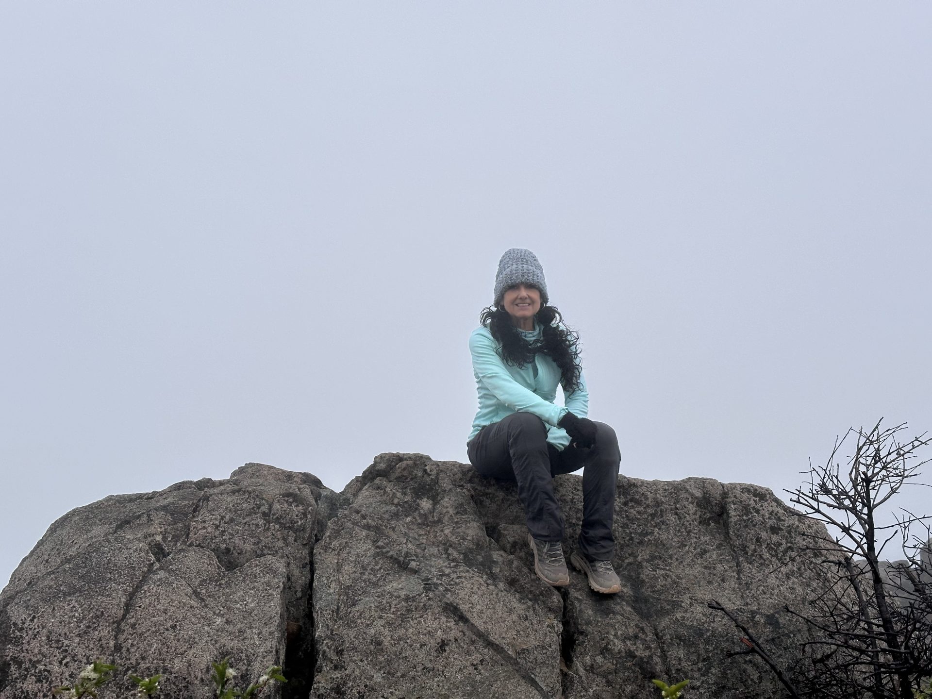 The Azalea Glen route is beautiful with lots of spring flowers blooming. The trail up isn’t too hard but it is rocky until you get to the intersection and the fire road where it has a little more gradual  incline up to the summit. It was very windy and cold! Went up to the tower, climbed up the boulders to the actual Summit. There was no sign this year just a summit box. Took the loop down through the campground. 5 miles up 3 miles down