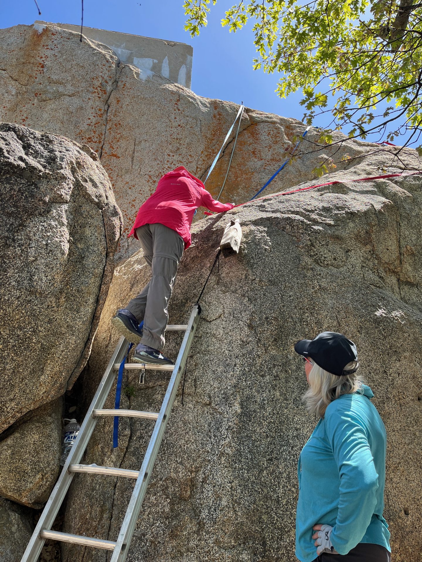 First part of hike is 2 miles uphill and exposed (wear sunscreen/bring water), then you enter a beautiful forest trail with rolling hills before another steep (but shorter) climb to summit. The gnats were bothersome, especially in the shaded areas of the forest (strongly suggest a mosquito net – the gnats don’t bite but they are really pesty.) The summit itself looked a bit too sketchy to come down so we didn’t climb past the metal ladder to the ropes. We were the only ones there on Monday and enjoyed a nice picnic at the picnic table near the top, enjoying the view. The entire route is on unpaved fire road. Only one rattlesnake and it went on its way warning us with its rattle. Weather was really nice – temps in the 5os with an occasional breeze.