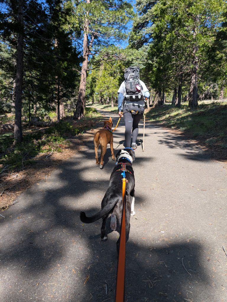The hike was deceptive, the road was smooth and easy but the incline was a challenge. Rangers attended to one of the trails, we saw little bug release traps along the side of the road at the start. On this hike we discovered Ruth’s trail name, “walking bird” due to her peak interest in those types of animals. The weather was great, but must start early with sun protection. Walking poles and sticks helped along with plenty of water. The woods provided much welcome shade as we got closer to the top. On the way down we saw a scheduled burn off in the distance.