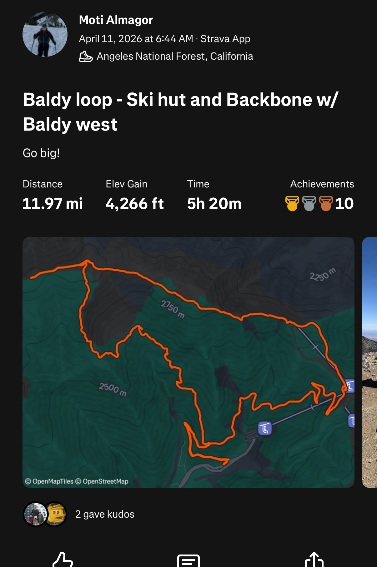 Baldy loop – up Ski Hut, down Backbone, Baldy West side quest.