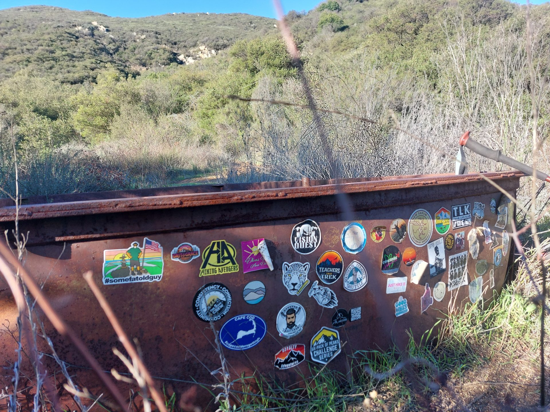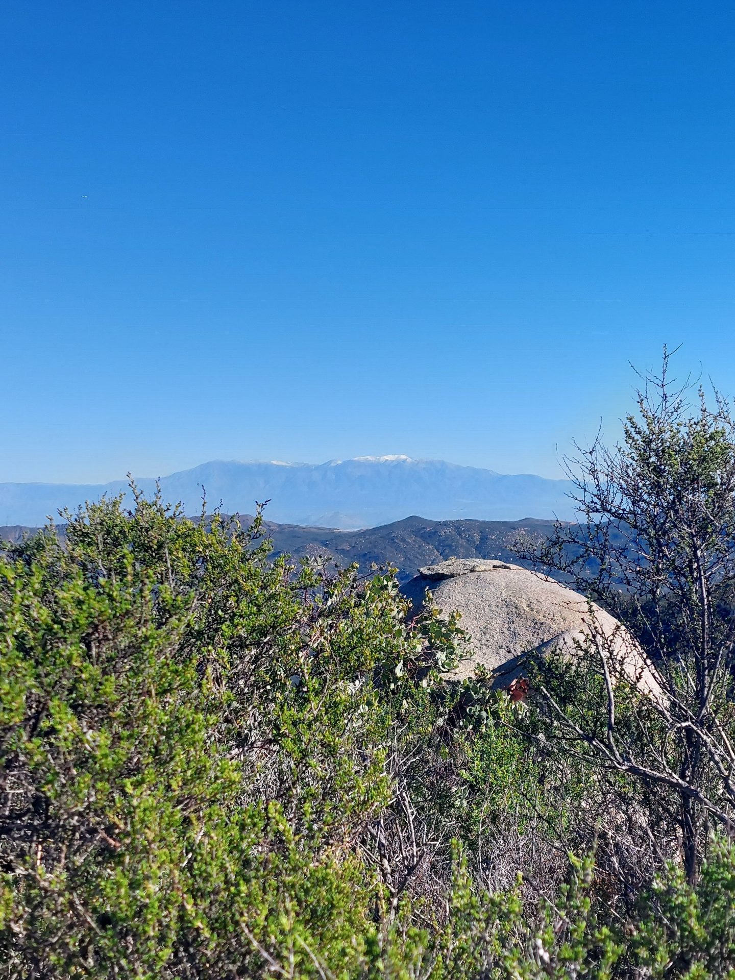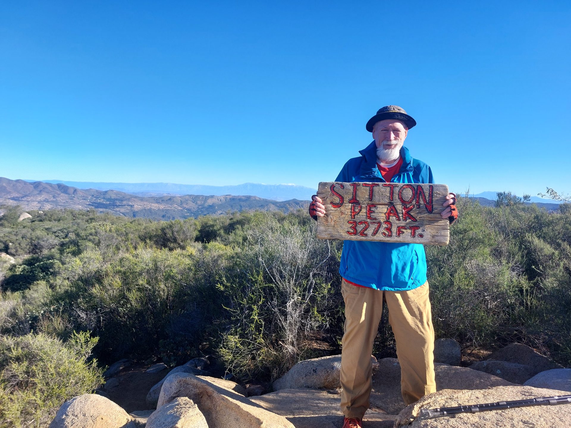 Some fat old guy got up early and drove in the dark to take a little walk to the least of the Southern California 6 Pack of Peaks, Sitton Peak. It was a little breezy and chilly which was just about perfect for this hike. It was surprisingly deserted, just one group ahead of me and one couple that caught up to me as I reached the summit. I ran into more people on the way down, but fewer than I expected. Maybe people were flocking to the zoo that was Mt.Baldy and Icehouse after the closures. Among the people I ran into as i was coming down were Tom and Kevin, and Carla who I did Mt. Whitney with. It’s always a pleasure to run into hiking friends.