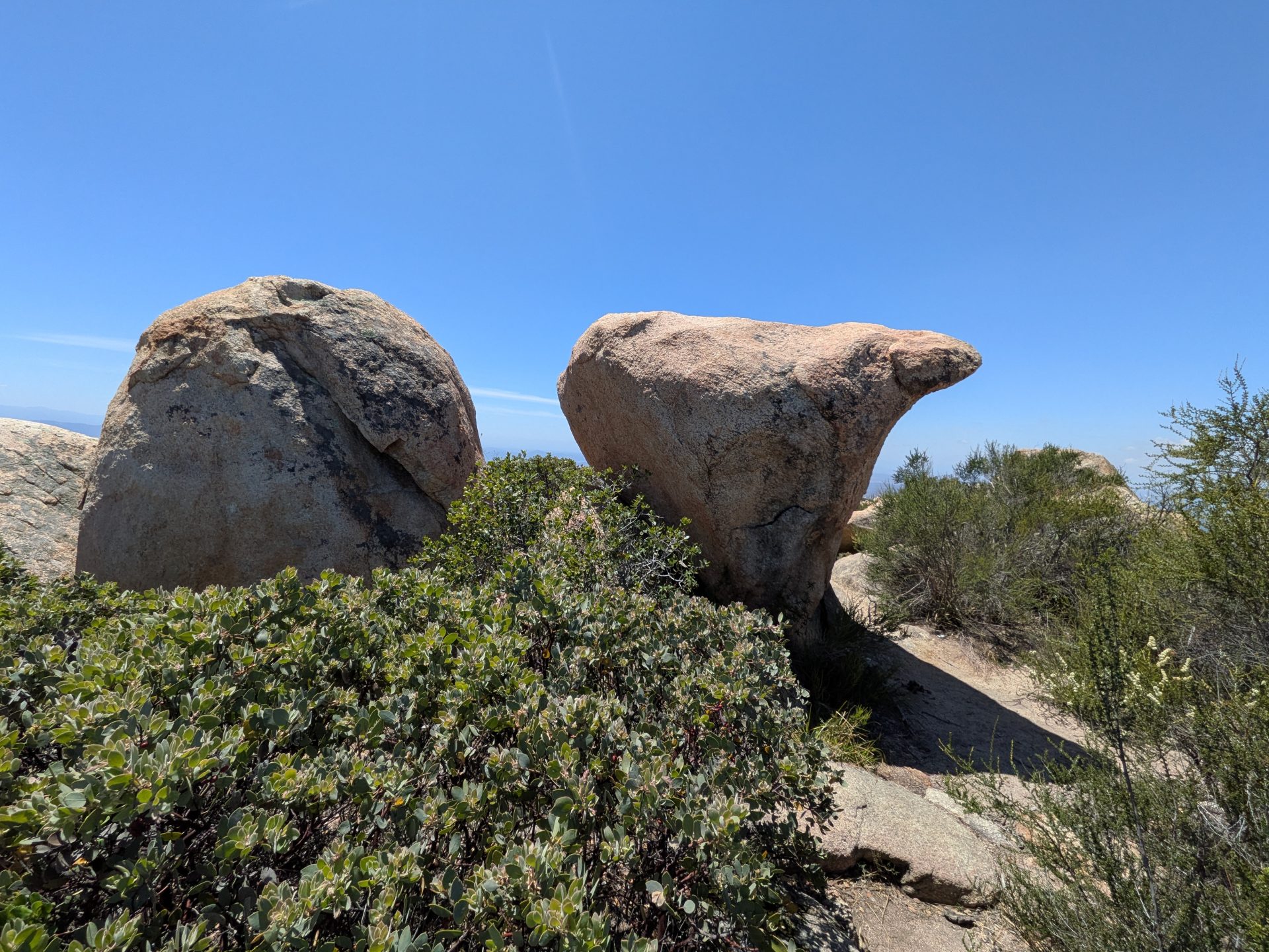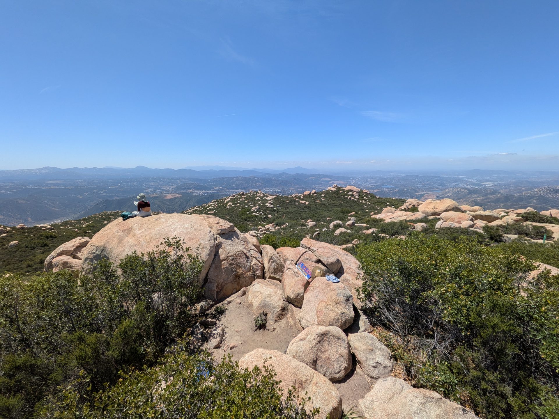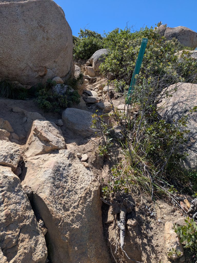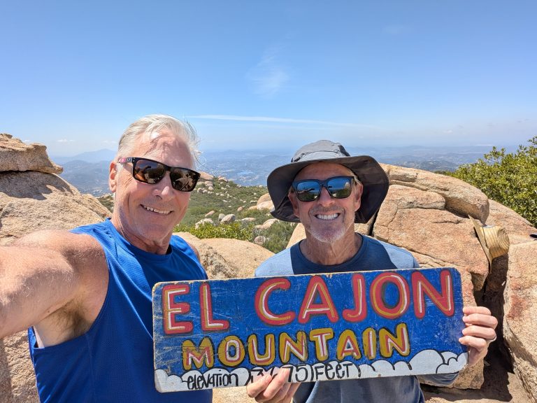 This lived up to its reputation as the hardest hike in San Diego county as well as the description of being uphill in both directions. Very glad Jim Mills and I did this hike on a 70° day and nothing warmer. This is my second favorite hike among the six peak challenge. (Corte Madre being the most scenic) The rock formations all along the trail are spectacular. Sweeping views from many different viewpoints along the trail and of course at the top. I did do the diversion up to the top of El Capitan which is an easy detour. Same as the caves on the way down. Just steep Hill to get there but it’s short and they’re cool to see even though they don’t really go anywhere. I can’t recommend strongly enough that you bring more water than you think you will need. I would pack a couple of bottles of Gatorade or mix in some liquid IV as well.