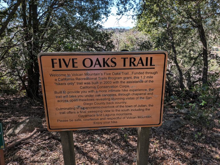 Jim Mills, Doug Hansen and I tackled Volcan Mountain for the first in the 6 pack of peaks challenge. We could not have picked a better day. We were concerned about the heat which was going to set records but our timing was ideal. Maybe 70 degrees with a light breeze. We took the main trail up and the 5 oaks trail down. Both are great.