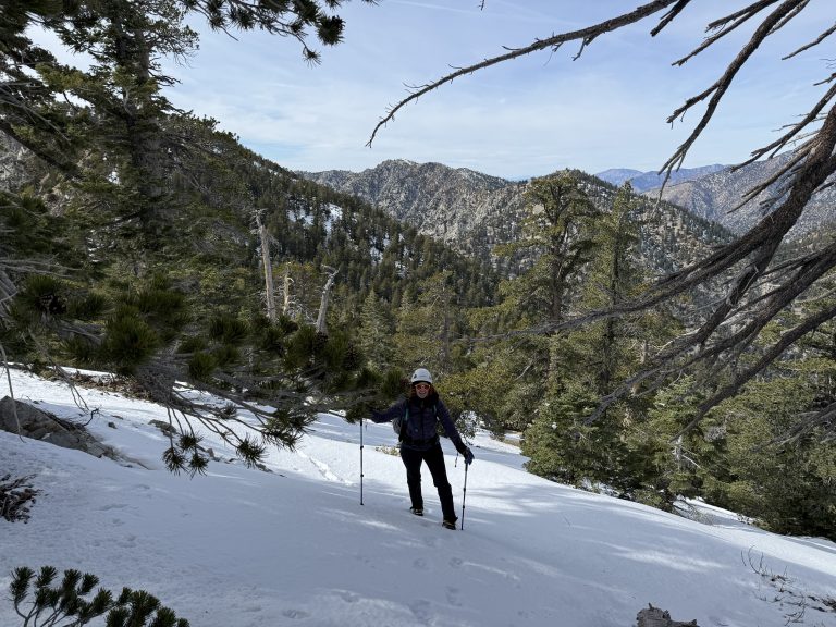 More icy patches up the switchback and by the time you get to the north exposure it’s basically fully covered in snow and ice.