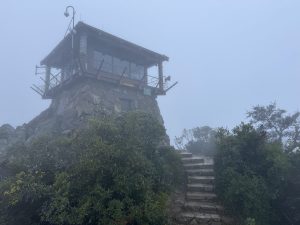 The goal for this hike is to reach the tall, square structure at the top that is left over from when it was an Air